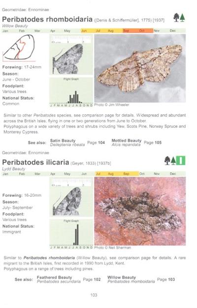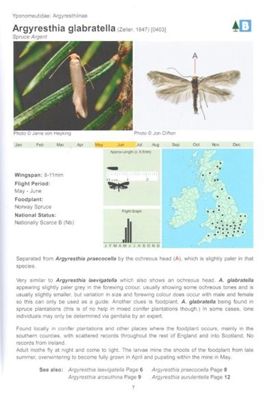 Identification guide to 108 coniferous-feeding micro and macro moths from Great Britain and Ireland, including photos of moths at rest and set specimens.