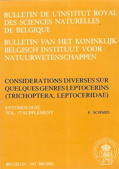 Text French. Bulletin de l'Institut Royal des Sciences Naturelles de Belgique, Entomologie Vol. 57. Supplément.