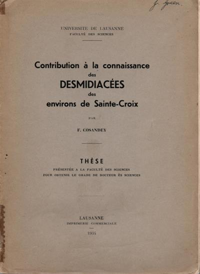 Contribution à la connaissance des desmidiacées des environs de Sainte-Croix