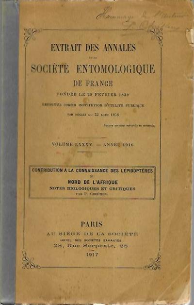 Text French. Offprint from Annales de la Société Entomologique de France Vol. LXXXV [1916]: 369-502.