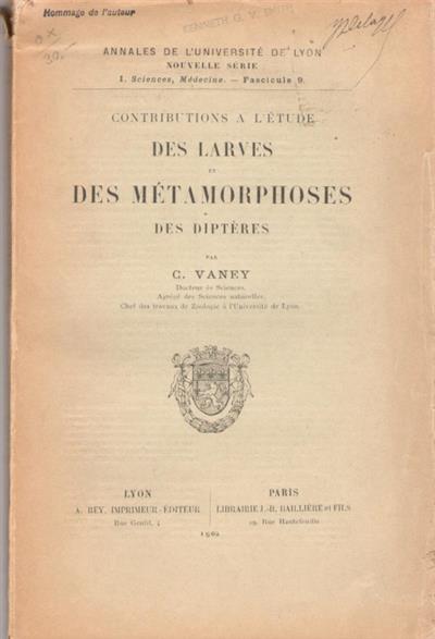 Contributions à l'étude des larves et des métamorphoses des Diptères