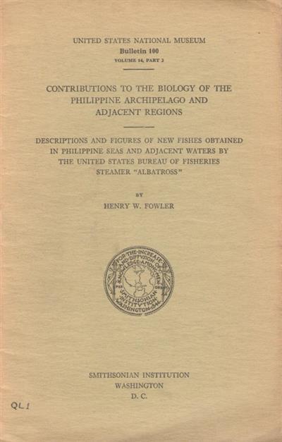 Contributions to the Biology of the Philippine Archipelago and Adjacent Regions: Descriptions and Figures of new fishes obtained in Philippine Seas and adjacent waters by the United States Bureau of Fisheries Steaamer 'Albatross'