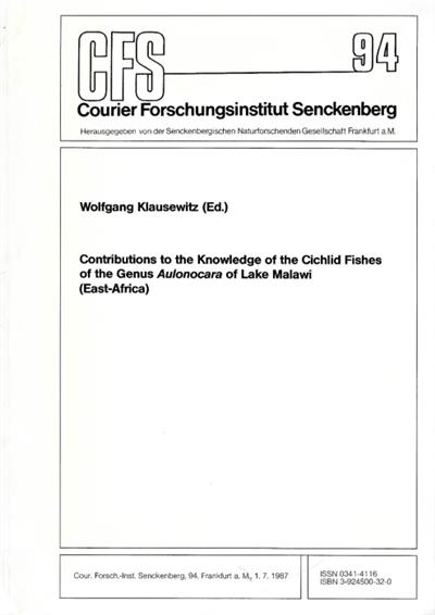 Contributions to the Knowledge of the Cichlid Fishes of the Genus Aulonocara of Lake Malawi (East-Africa)
