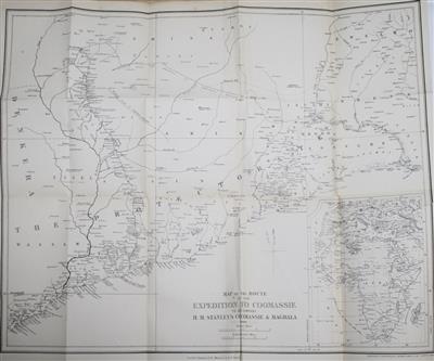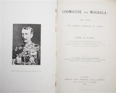 First edition. Accounts of two British campaigns in Africa by Sir Henry Morton Stanley (1841-1904), the British explorer and special correspondent for the New York Herald. Best known for his later expedition to locate Dr. David Livingstone, Stanley began his career covering the African military campaigns of prominent British generals, including Sir Garnet Wolseley and Lord Napier. Wolseley’s Coomassie campaign during the Third Anglo-Ashanti War (1873-1874) involved fierce fighting in the dense jungles of the Gold Coast, West Africa (present-day Ghana). Stanley also reported on Lord Napier’s Abyssinian expedition, which saw thousands of troops traverse uncharted terrain to reach the mountain fortress of Magdala.