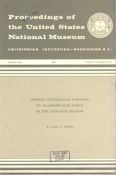 Copepods Crustaceans Parasitic on Elasmobranch Fishes of the Hawaiian Islands