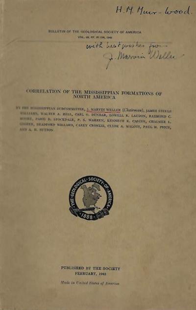 8vo, orig. wrappers. Vg. Inscribed by editor to front cover. From the library of Helen Marguerite Muir-Wood (1895-1968), British palaeontologist and historian of palaeontology, with her name to front cover.