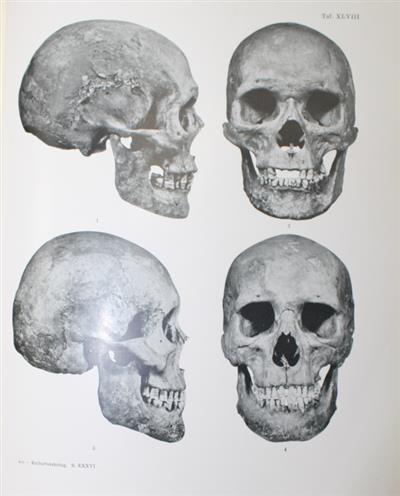 Vol. I (of 2). Kristian Emil Schreiner (1874-1957) was a Norwegian anatomist and the leading authority on physiognomy. He was Professor and Head of the Department of Anatomy at the University of Oslo, 1908-1945. In this volume, he studied more than 2,000 medieval skulls housed at the University. The second volume (not present here) was published after the war in 1946, and included analysis of Norwegian prehistoric bones.