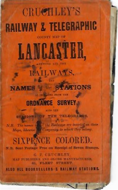Cruchley's Railway & Telegraphic Map of Lancashire showing all the Railways & names of stations also the telegraph lines & stations. Improved from the Ordnance Surveys.