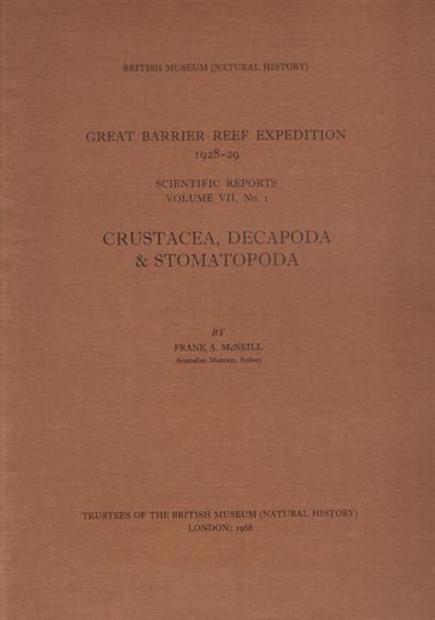 Crustacea, Decapoda & Stomatopoda Great Barrier Reef Expedition 1928-29. Scientific Reports. Vol. VII, No. 1