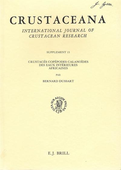 Text French. Crustaceana, International Journal of Crustacean Research, Supp. 15.