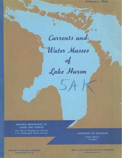 Currents and Water Masses of Lake Huron (1954 Synoptic Surveys)
