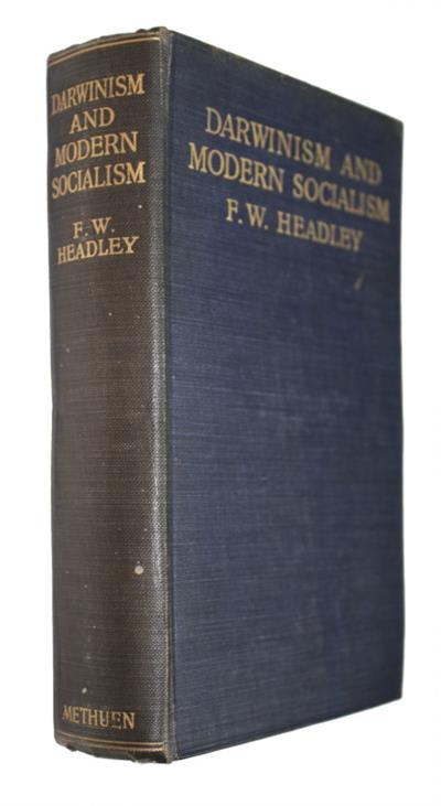 1st edition. 40-page publisher's catalogue bound at rear. Frederick Webb Headley (1856-1919) was an English naturalist and author of books on natural historyand Darwinism. This work is based on two lectures presented to the Fabian Society in 1903, Neo-Darwinism and Modern Social Questions. The Fabian Society was influential in the development of socialist thought in Britain. In this work Headley examined how Darwin’s theory of natural selection could be applied to social and political ideas, particularly within the framework of socialism. This work was early effort to reconcile the ideas of biological evolution with socialist thought, and it contributed to the broader intellectual currents that shaped early 20th-century debates about society, progress, and the role of science in political change.
