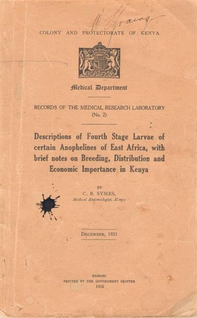 Descriptions of Fourth Stage Larvae of certain Anophelines of East Africa, with brief notes on Breeding, Distribution and Economic Importance in Kenya