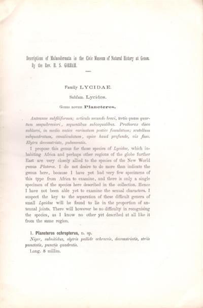 Descriptions of Malacodermata in the Civic Museum of Natural History at Genoa