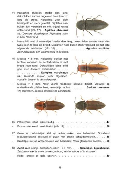Click beetle (Elateridae) are a fascinating family of beetles, which are instantly recognizable by their ability to jump on a 'click'. Identification key to the 76 recorded species of clickbeetlle (Elateridae) from the Netherlands. Designed for use in the field, using where possible, features visible with the naked eye, or by use of a hand lens.