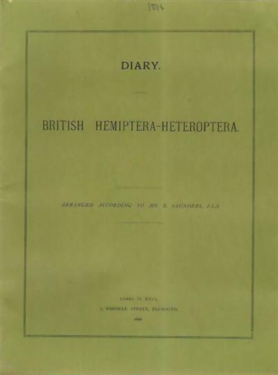 Diary. British Hemiptera-Heteroptera. Arranged according to Mr. E. Saunders, F.L.S.