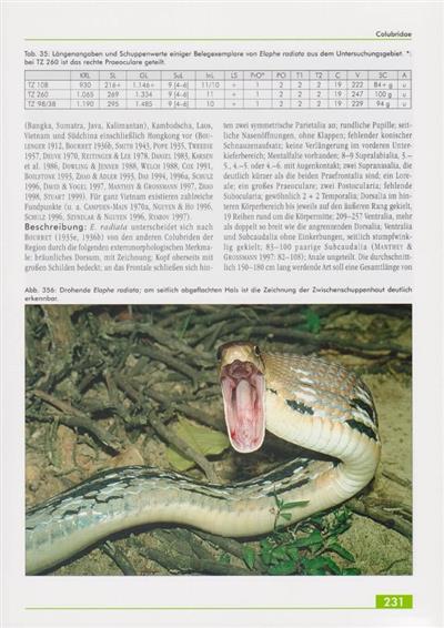 Text German. Southeast Asia is widely known for its impressive diversity of reptiles and amphibians. Vietnam, with its rich rainforests, is no exception - quite the opposite! Around 100 species are presented in this brilliantly illustrated book, naturally with comprehensive information on their distribution, appearance, lifestyle, and much more. A unique book about a unique region!