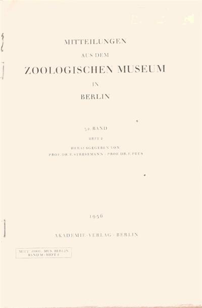 Offprint from Mitt. Zool. Mus. Berlin Band 52(2): 189- 321