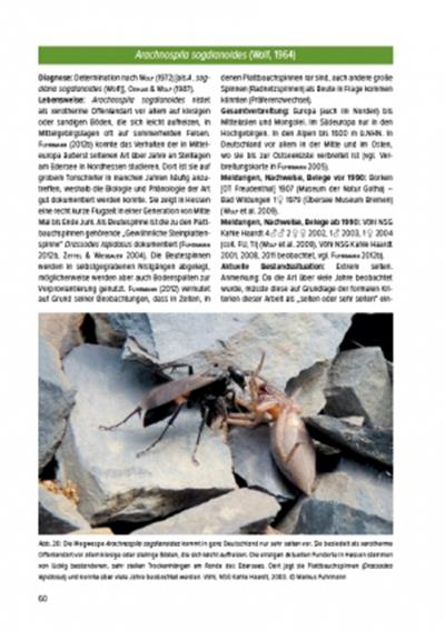 Insgesamt werteten die Autoren etwa 8000 Belege in Literatur und wissenschaftlichen Sammlungen aus. Die Gegenüberstellung alter und neuer Funde ermöglicht eine Einschätzung der Bestandsentwicklung. Einige besonders typische Biotope von Wegwespen werden vorgestellt, notwendige Maßnahmen zur Pflege beschrieben. Die Ursachen des Artenrückgangs werden beispielhaft erläutert.]