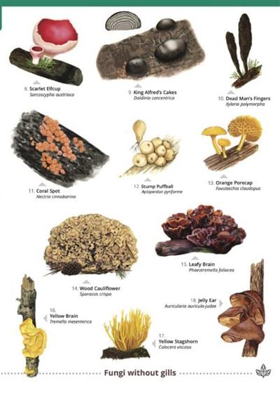 This guide covers 40 species, including mushroom-shaped fungi, jellies and brackets found in woodland, parks and churchyards.
