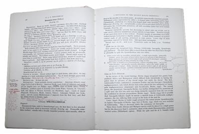 An exceptional and unique assemblage of scholarly works by Dr. Peter J.P. Whitehead (1930-1993), a preeminent ichthyologist and former head of marine fishes at the Natural History Museum, London. Whitehead was a leading authority on clupeoids-herrings, shads, sardines, hilsa, and menhadens-whose meticulous research significantly advanced the field of fish taxonomy. Collection consists of 33 papers 1958-1972, bound in 18 plastic covers. Also 12 of papers published in the series, Bulletin of The British Museum (Natural History) Zoology in original wrappers: