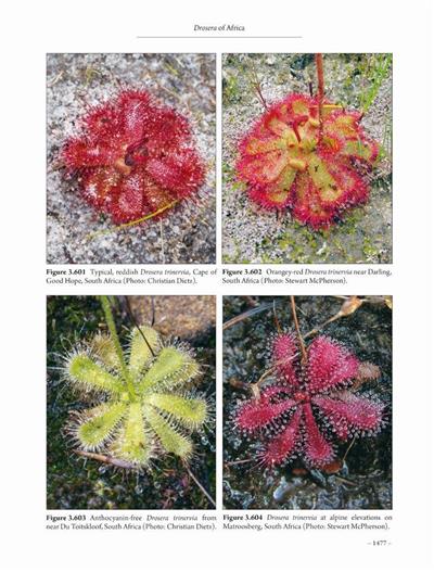 Reprints of the original 2017 editions. These generously illustrated volumes document all Drosera species recognised to date, featuring in-depth descriptions, background information and over 1900 photographs, as well as an exhaustive index of all Drosera names and synonyms.