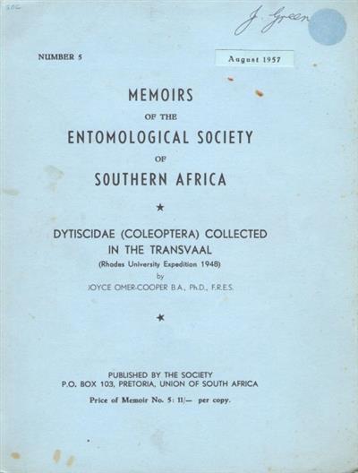 Memoirs of the Entomological Societey of Southern Africa 5
