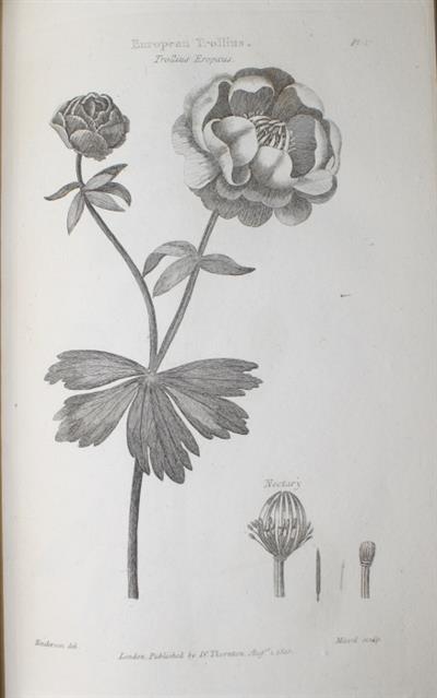 Part I: Classification; Part II: Terms of Science. First edition. Engraved plates by Henderson, Miller, and Reinagle. Vol. I: 86 plates (plus a duplicate of Plate 21) + 5 tables; Vol. II: 85 plates, 24 engraved section titles. The plates are erratically numbered. Stafleu & Cowan give 93 and 84 plates in the two volumes (but do not mention the charts), but state that in all copies seen by them plate numbers differ. Nissen calls for 52 and 84 plates.