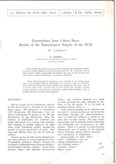 Entomofauna from Cabora Bassa. Results of the Entomological Brigade of the IICM: III. Lepidoptera
