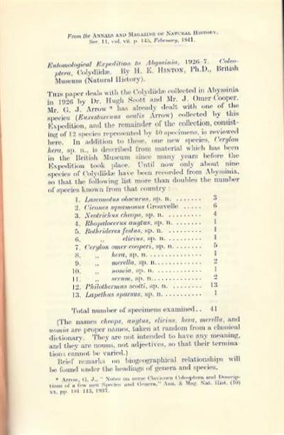 Entomological Expedition to Abyssinia, 1926-7 Coleoptera, Colydiidae
