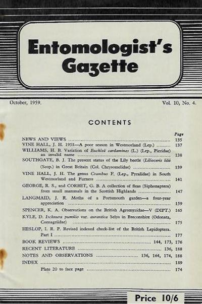 Entomologist's Gazette. Vol. 10, Part 4 (1959)