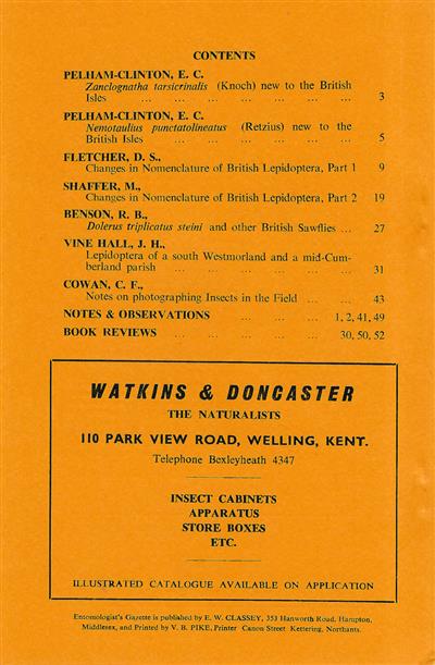 Entomologist's Gazette. Vol. 17 (1966), Part 1