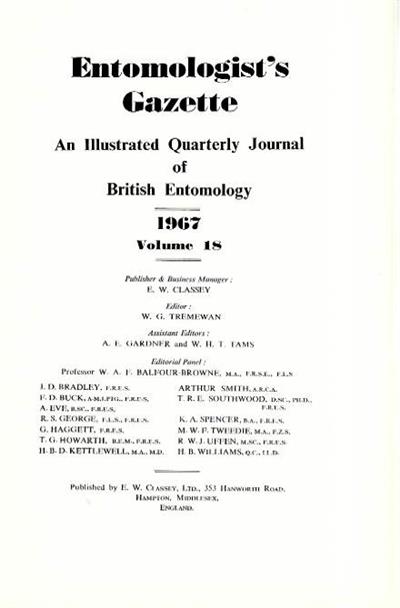 Entomologist's Gazette. Vol. 18 (1967), Title page and Index