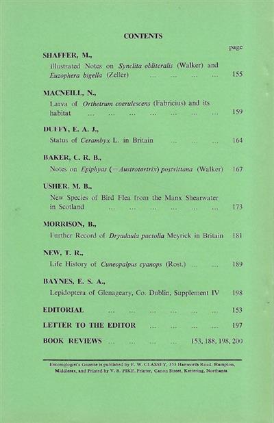 Entomologist's Gazette. Vol. 25, Part 3 (1974)