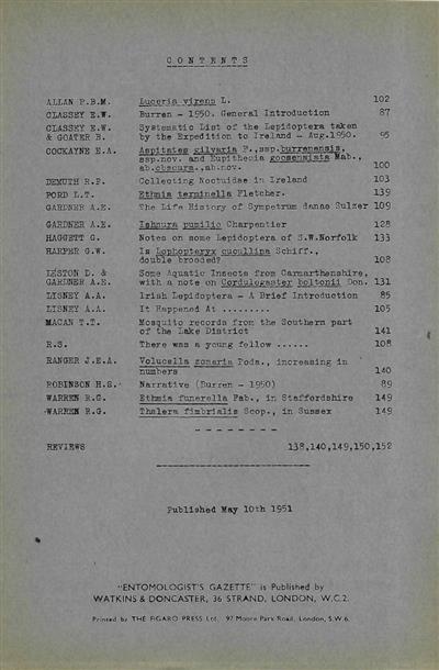 Entomologist's Gazette. Vol. 2, Part 2 (1951)