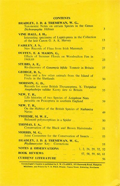 Entomologist's Gazette. Vol. 21 (1970), Part 1