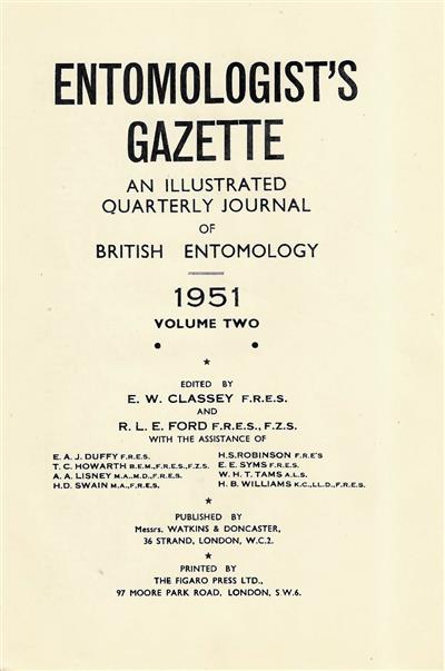 Entomologist's Gazette. Vol. 2, Part 1 (1951)