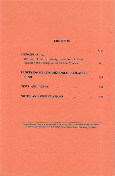 Entomologist's Gazette. Vol. 25, Part 3 (1974)