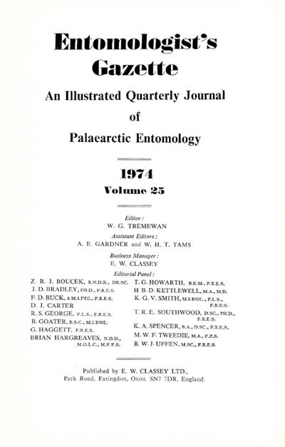 Entomologist's Gazette. Vol. 25, Part 3 (1974)