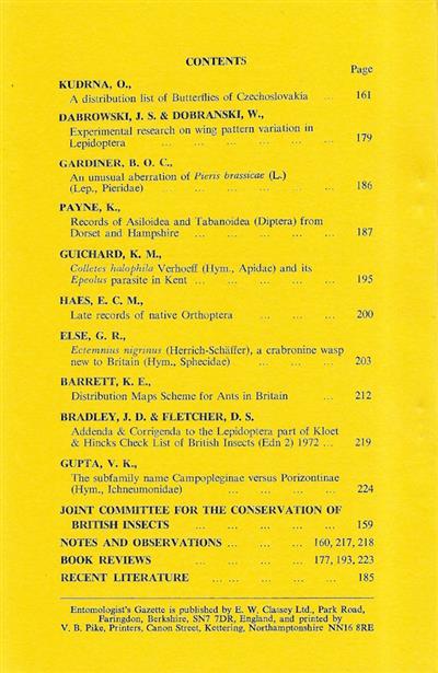 Entomologist's Gazette. Vol. 25, Part 3 (1974)