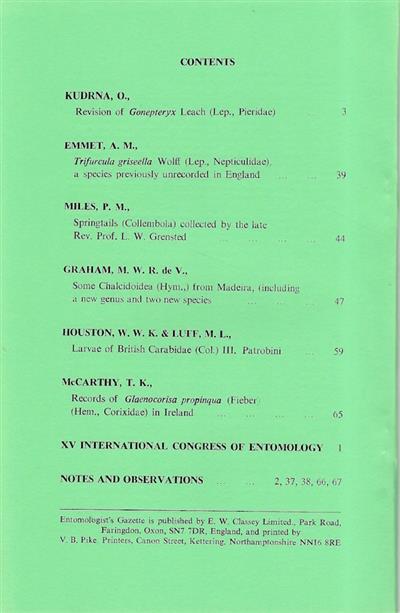 Entomologist's Gazette. Vol. 25, Part 3 (1974)