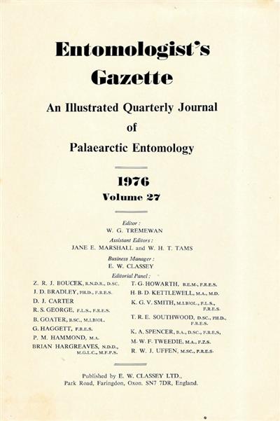Entomologist's Gazette. Vol. 27 (1976), Title page and Index