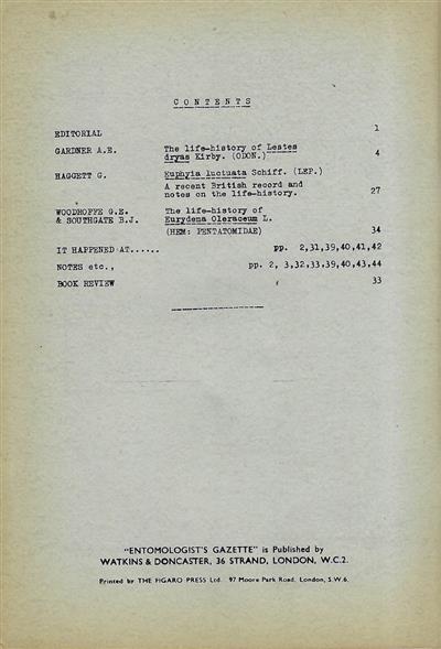 Entomologist's Gazette. Vol. 3, Part 1 (1952)