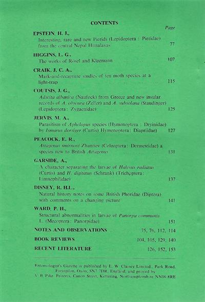 Entomologist's Gazette. Vol. 30, Part 2 (1979)