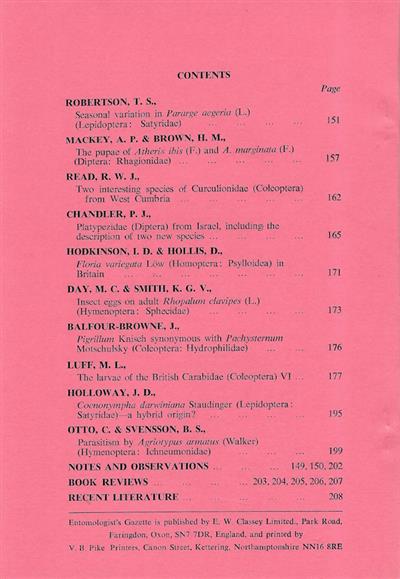 Entomologist's Gazette. Vol. 25, Part 3 (1974)