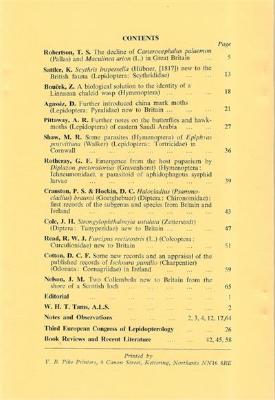 Entomologist's Gazette. Vol. 32, Part 1 (1981)