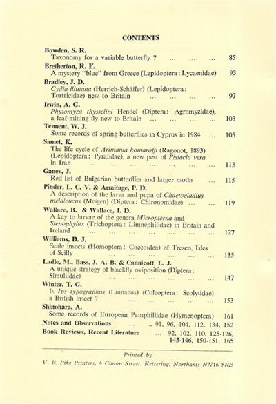 Entomologist's Gazette. Vol. 36 (1985): Complete w/o Index