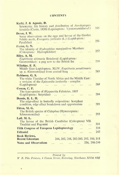 Other titles from the series : Entomologist's Gazette