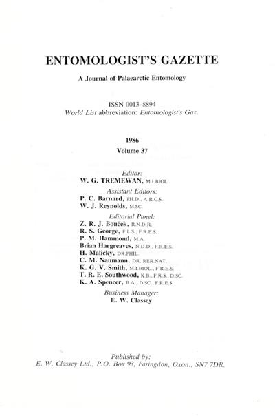 Other titles from the series : Entomologist's Gazette