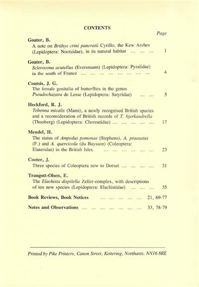 Entomologist's Gazette. Vol. 41, Parts 1+2 (1990)